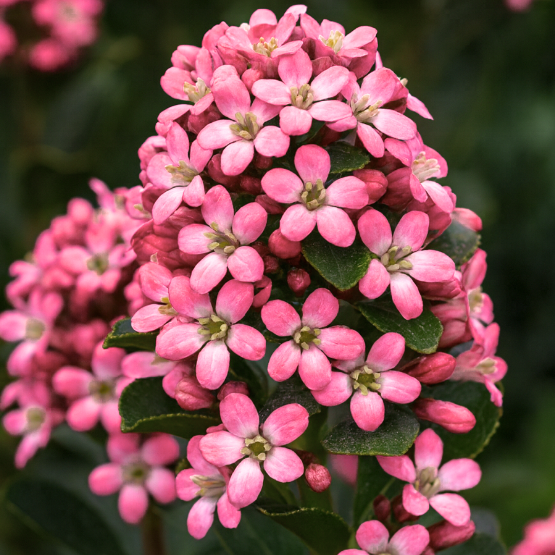 Escallonia ‘Pink Elle’ is a compact, low-maintenance shrub admired for its glossy green foliage and striking upright flower spikes that burst with soft pink blooms from late spring into mid-summer. Known for its strong resilience, it thrives in sunny, coastal, and exposed locations where many shrubs struggle. Once established, it becomes drought-tolerant, dependable, and easy to care for — ideal for gardeners seeking long-lasting impact with minimal effort.
