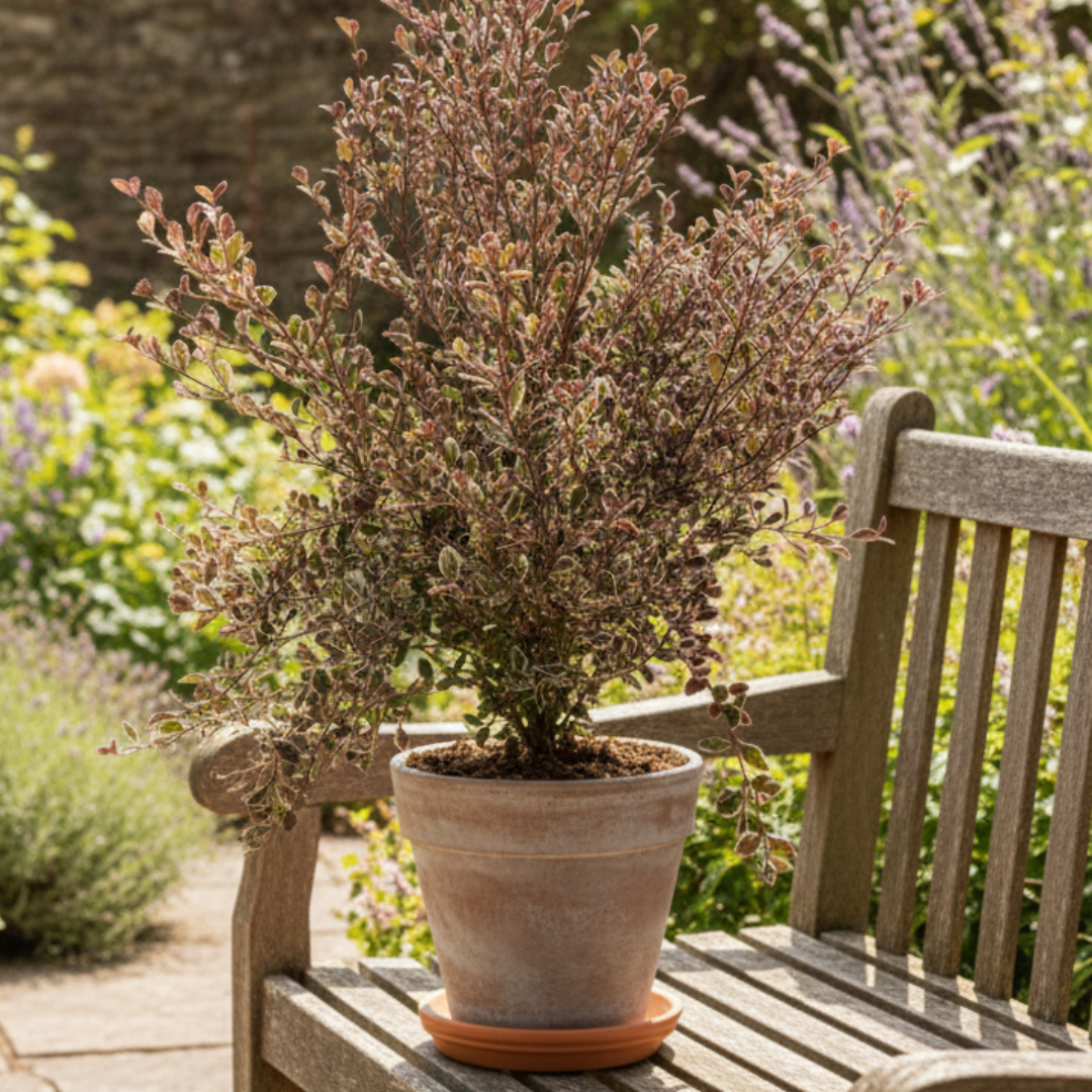 Lophomyrtus is prized for its richly coloured leaves, ranging from lime-gold and rose-pink to deep burgundy and crisp white variegation. The foliage shifts subtly through the seasons, adding depth, contrast and architectural interest to modern and traditional planting schemes. With their compact habit and dense branching, these shrubs work beautifully in mixed borders, patio pots and contemporary garden displays.