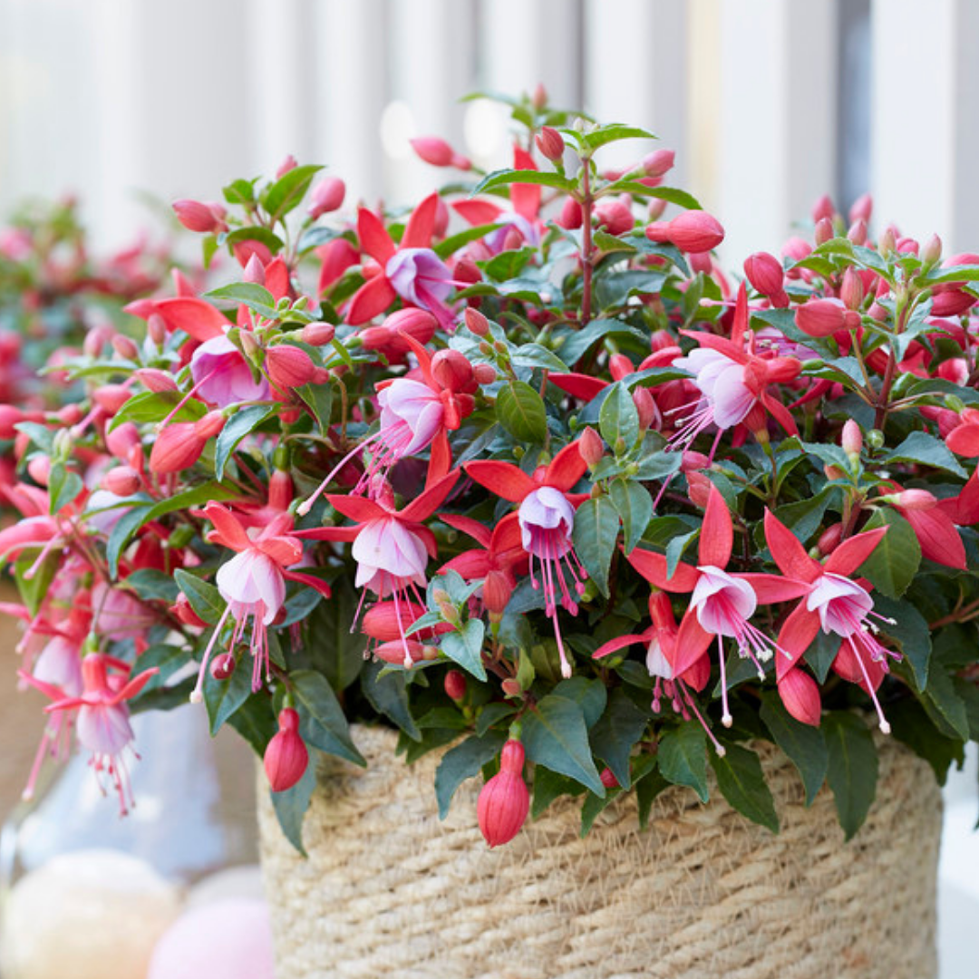 Graceful form, vibrant colour & continuous summer flowering, this Fuchsia plant collection brings together both trailing and upright forms, offering versatile structure and long-lasting impact across hanging displays, containers & garden beds.