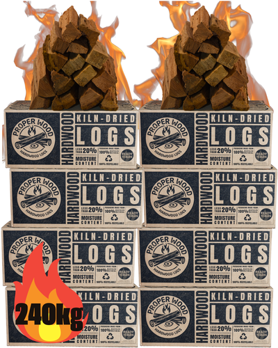 Kiln Dried Hardwood Logs, Ready to Burn 240KG Box