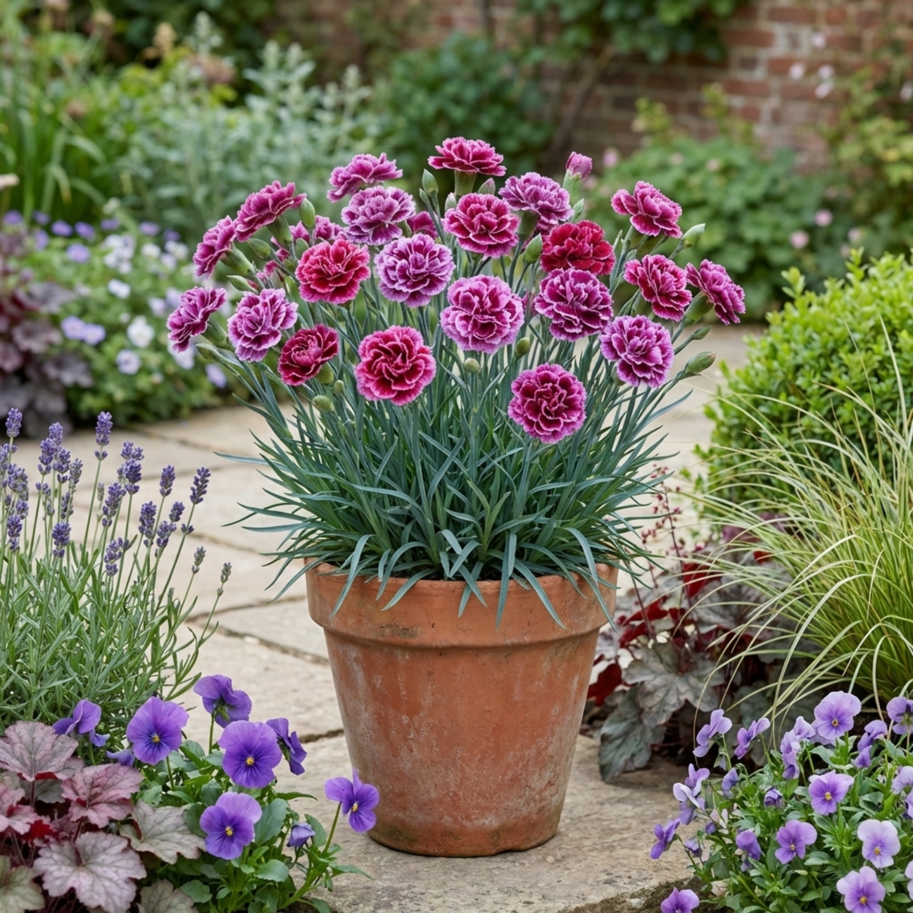 Vibrant, long-flowering carnation plants bred for strong performance, compact growth and richly scented blooms—perfect for pots, containers, borders and patio displays.