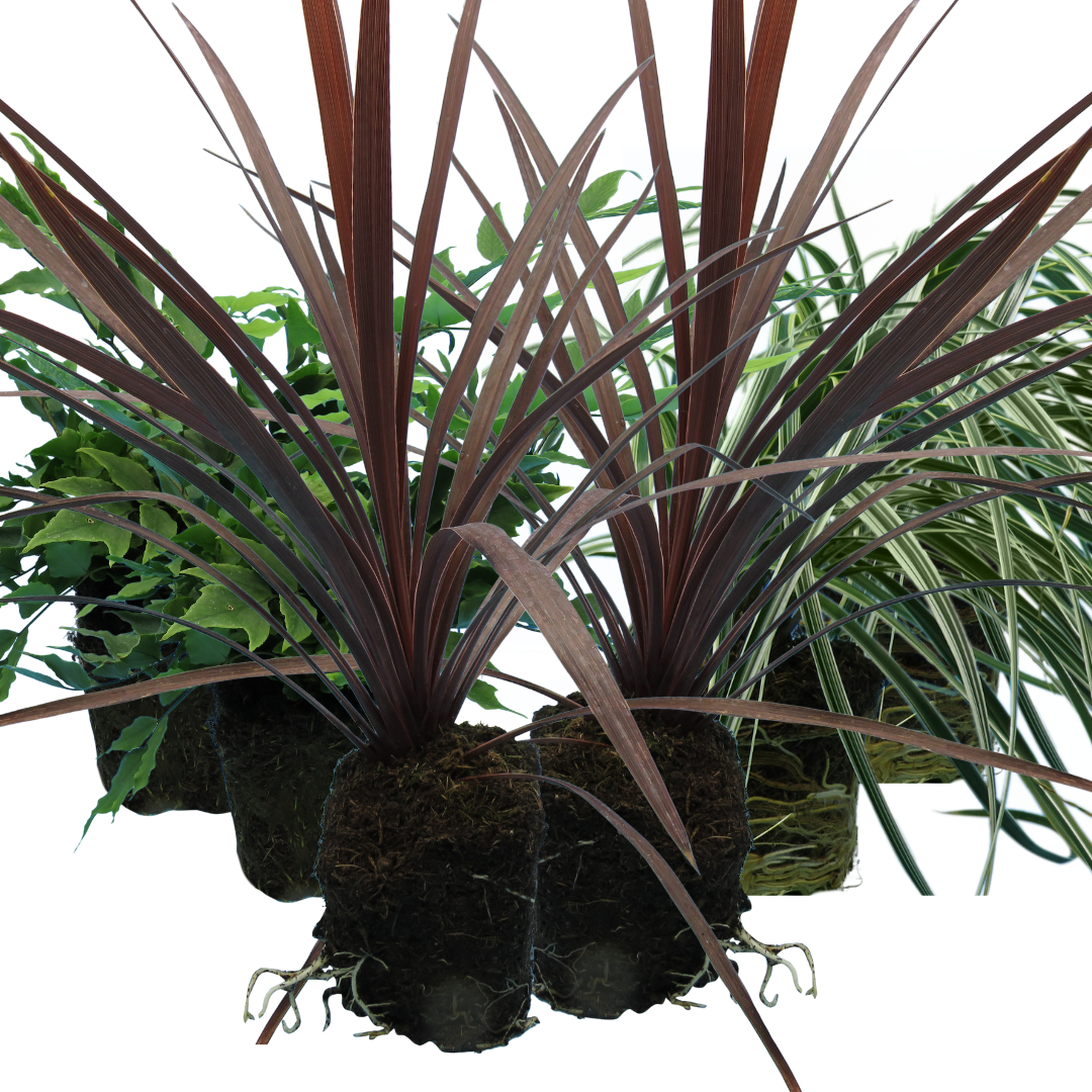 Whether you're working with a shaded patio, a modern balcony, or a tired border, our Contemporary Mix Collection brings architectural shape, colour contrast, & evergreen structure that lasts all year. This ready-to-plant trio (or six-pack) combines a red-leaved Cordyline, a fine-textured Carex grass, & a lush Holly Fern—all expertly paired to give your space a bold, clean-lined finish without the need for constant upkeep.