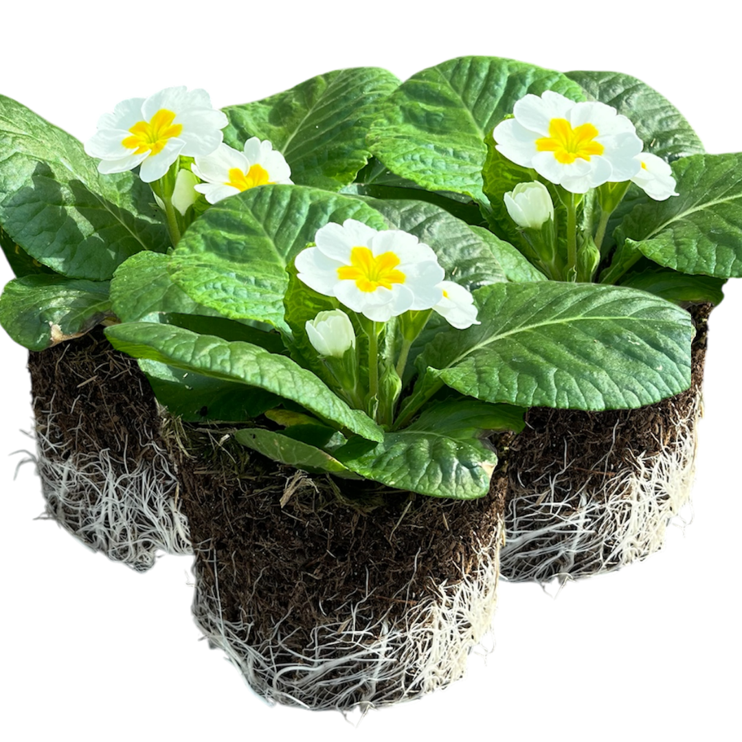 Primroses are a timeless garden favourite—bringing bold, cheerful colour to beds, borders, pots, and baskets during the cooler months when many plants are still dormant. Available in a stunning choice of varieties—Yellow, Appleblossom, Blue Bicolour, Purple, Orange, White, Red, Pink, and our Growers Mixed Selection—each variety produces clusters of delicate, velvety blooms in vibrant single shades or charming multi-toned patterns, all set against neat rosettes of lush green foliage.